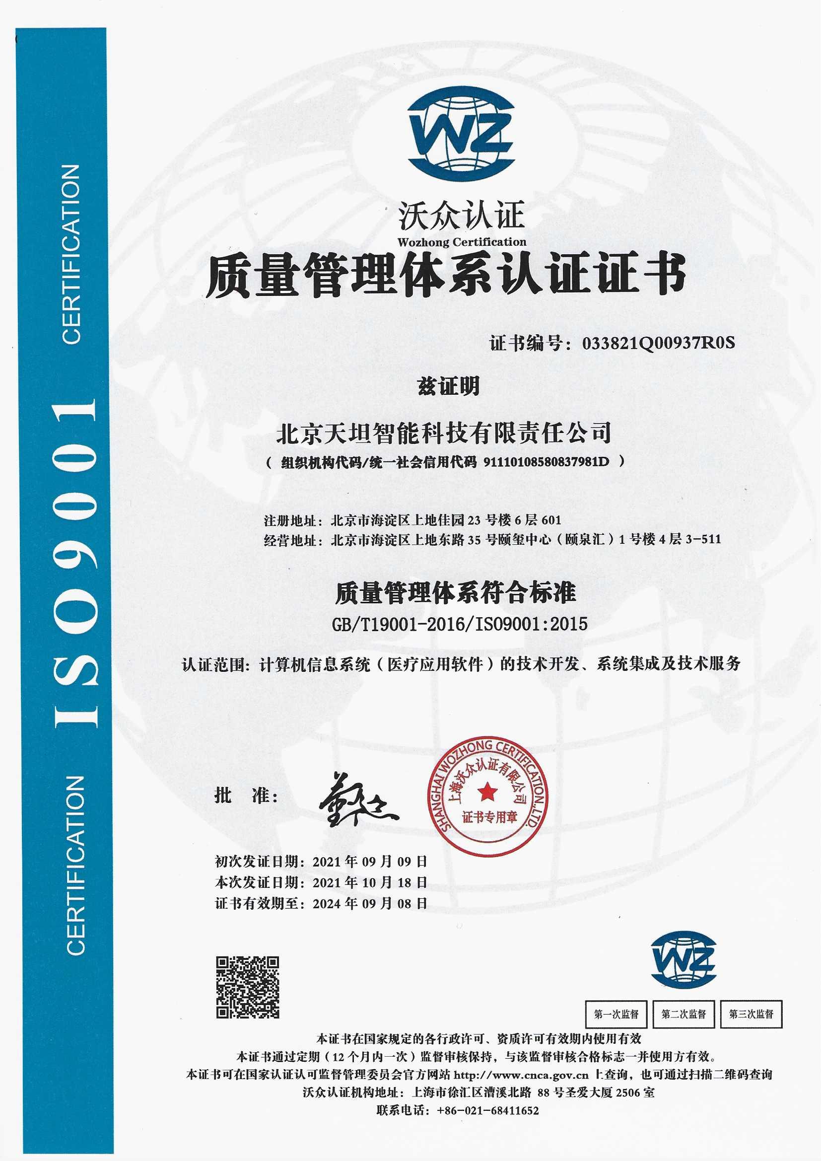 ![]() 質量管理體系認證證書(中) |