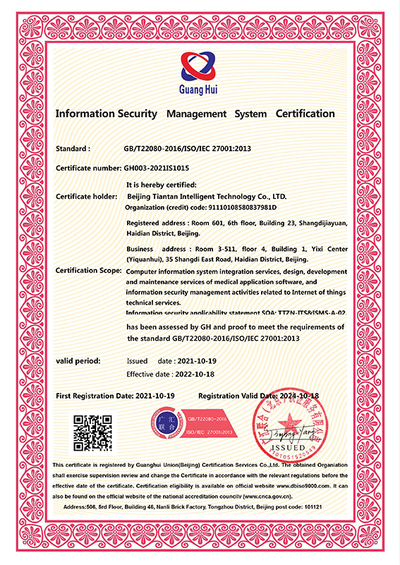 ![]() 信息安全管理體系認證證書 |