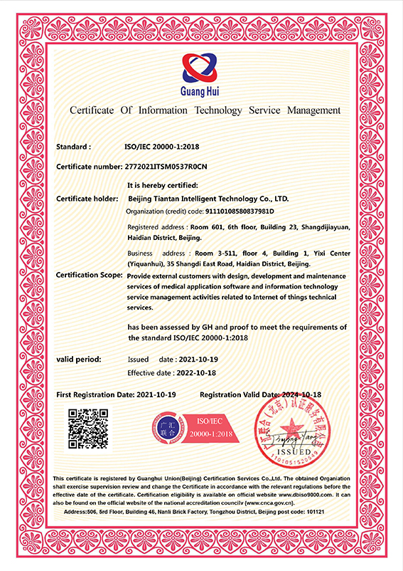 ![]() 信息技術服務管理體系認證證書 |