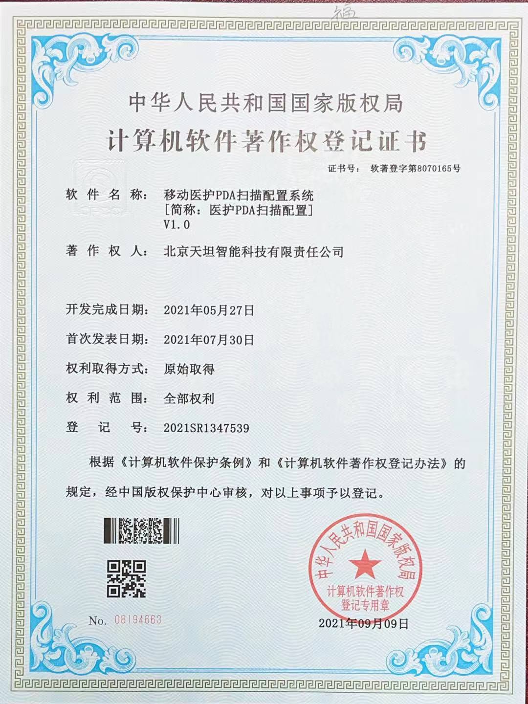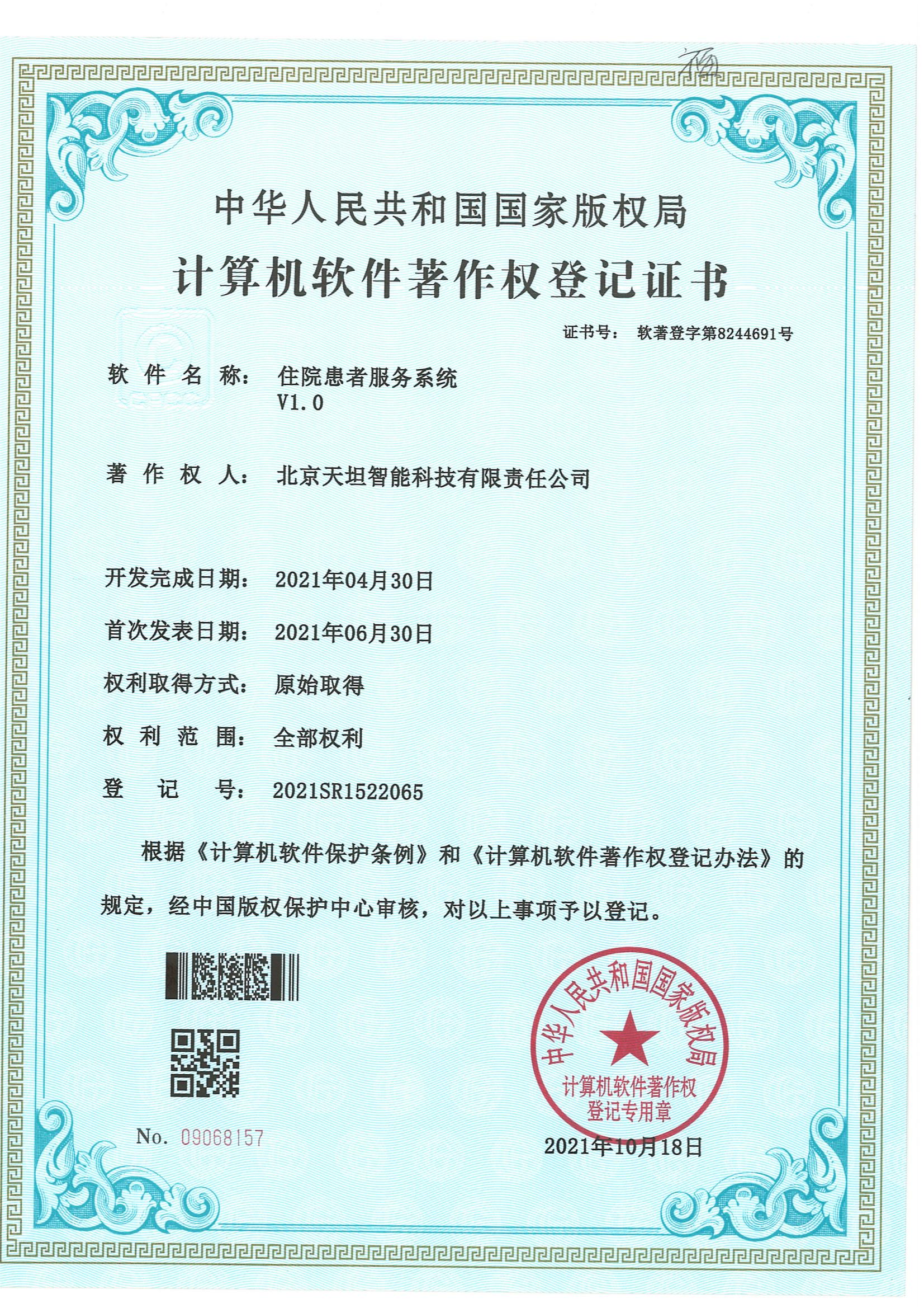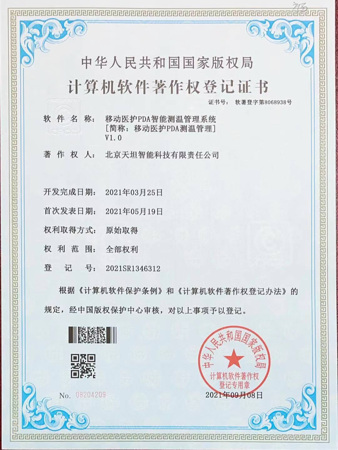 ![]() 軟件產品登記證書 |