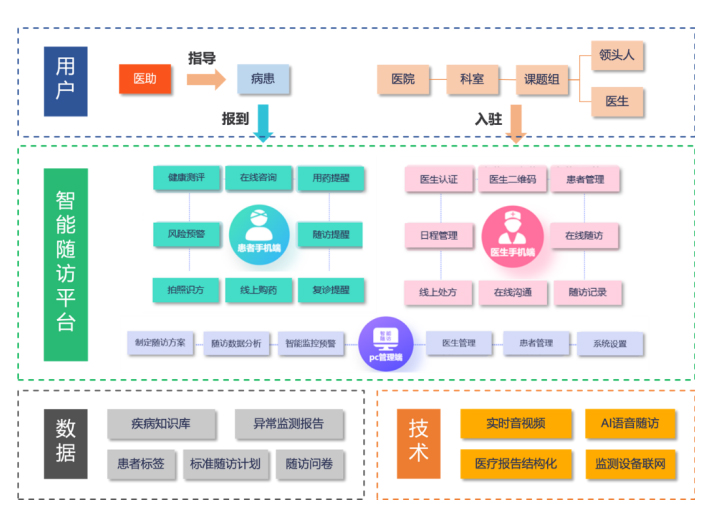 天坦智能開發(fā)的慢病管理運(yùn)營服務(wù)是一套完整的心血管隨訪標(biāo)準(zhǔn)體系,配合適用性極強(qiáng)的醫(yī)生端可配置界面,滿足絕大多數(shù)開展冠心病介入的醫(yī)療機(jī)構(gòu)需求,同時(shí),基于專家隨訪團(tuán)隊(duì)之間的協(xié)作,建立上下聯(lián)動(dòng)的醫(yī)生互動(dòng)機(jī)制,為隨訪的患者提供專業(yè)的管理方案。匹配有人工智能為核心的隨訪管理機(jī)制,可自動(dòng)化發(fā)送患者所需要信息,量表等隨訪內(nèi)容,具備機(jī)器學(xué)習(xí)功能,針對不同醫(yī)院形成不同模式的隨訪系統(tǒng)配置,匹配個(gè)性化的醫(yī)院隨訪體系,最終以患者交流平臺(tái),建立以患者需求為中心的線上服務(wù)體系,包括專家線上咨詢、藥品直送、可穿戴式設(shè)備居家監(jiān)護(hù)、護(hù)理居家康復(fù)及圍繞手術(shù)全周期的保險(xiǎn)支付產(chǎn)品。形成以醫(yī)學(xué)+智能+個(gè)性化+支付功能為一體的新一代的慢病管理平臺(tái)。