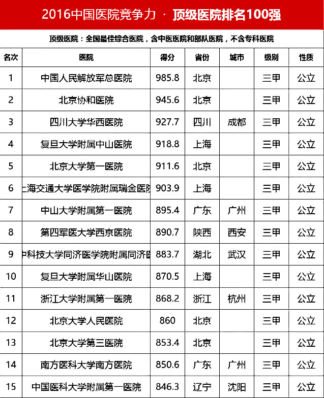 “頂級(jí)醫(yī)院100強(qiáng)”采用的排名指標(biāo)體系包括四個(gè)方面:醫(yī)院最優(yōu)規(guī)模(實(shí)開床位數(shù)、年門急診量、年出院量、全院人數(shù));醫(yī)療技術(shù)(正高職稱人數(shù)/全院人數(shù)、全院醫(yī)師人數(shù)/實(shí)開床位數(shù)、醫(yī)療設(shè)備資產(chǎn)/總資產(chǎn)、年住院手術(shù)量/年出院量、國(guó)家級(jí)衛(wèi)紀(jì)委臨床重點(diǎn)???總??茣?、ICU床占比);醫(yī)院運(yùn)行(平均住院天數(shù)、床位使用率、門診均次費(fèi)用/當(dāng)?shù)厝司鵊DP、住院均次費(fèi)用/當(dāng)?shù)厝司鵊DP、外省住院病人占比);學(xué)術(shù)影響力(院士人數(shù)、學(xué)術(shù)領(lǐng)袖占比、教育部重點(diǎn)學(xué)科及重點(diǎn)實(shí)驗(yàn)室/總??茢?shù)、本年度獲國(guó)家自然科學(xué)基金項(xiàng)目數(shù)量和總?cè)~)。
