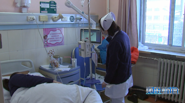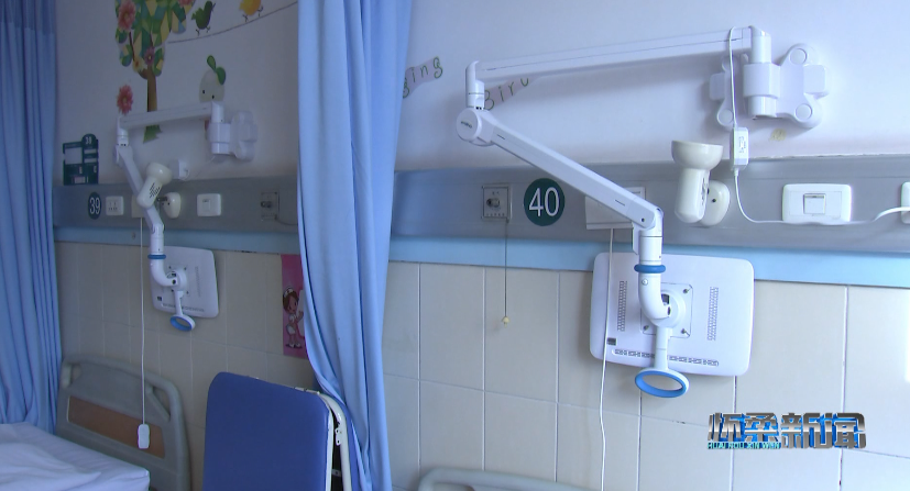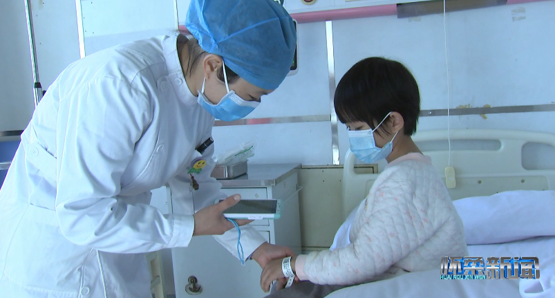 在兒科病房?jī)?nèi),前來(lái)?yè)Q藥的護(hù)士打開(kāi)床旁照護(hù)系統(tǒng),為小患者挑選喜歡的動(dòng)畫(huà)片,在確認(rèn)患者身份后用手持PDA掃描患者腕帶上的二維碼,識(shí)別病例等信息并登記換藥情況。有了床旁照護(hù)系統(tǒng)的動(dòng)畫(huà)轉(zhuǎn)移注意力,小患者不在緊張、害怕,整個(gè)換藥過(guò)程十分平穩(wěn)、迅速。